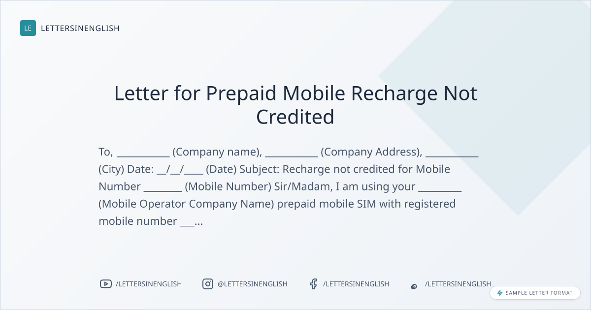 Sample Letter for Prepaid Mobile Recharge Not Credited - Complaint Letter About Uncredited Recharge for Mobile Number