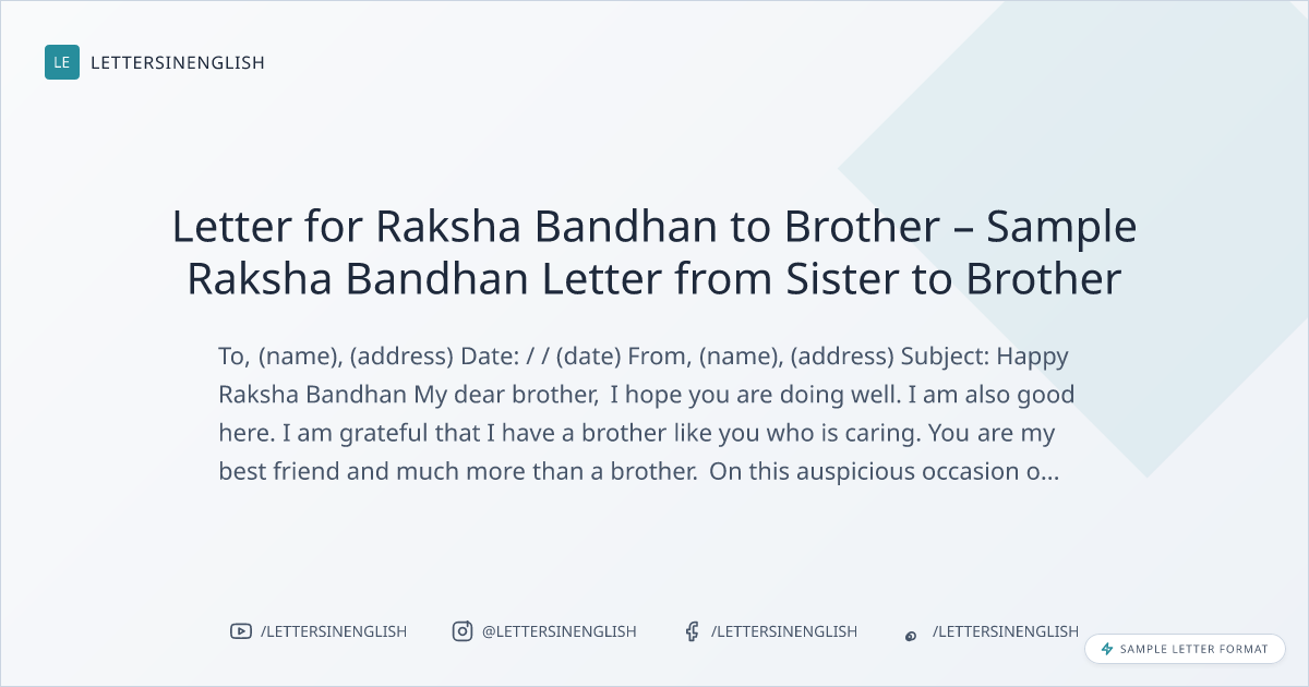 When writing a Raksha Bandhan letter to your brother, express your affection and gratitude while keeping the tone warm and sincere. Highlight your bond as siblings and convey your well wishes for his happiness and prosperity. Avoid ambiguity and ensure clarity in your message to make it more effective.