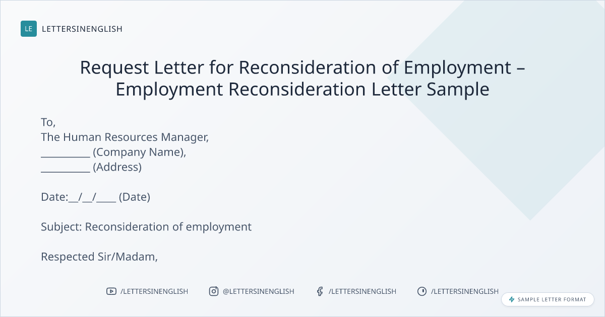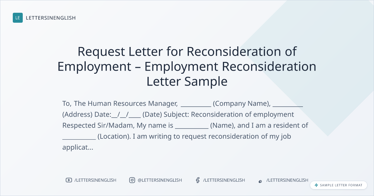 Request Letter for Reconsideration of Employment – Employment Reconsideration Letter Sample