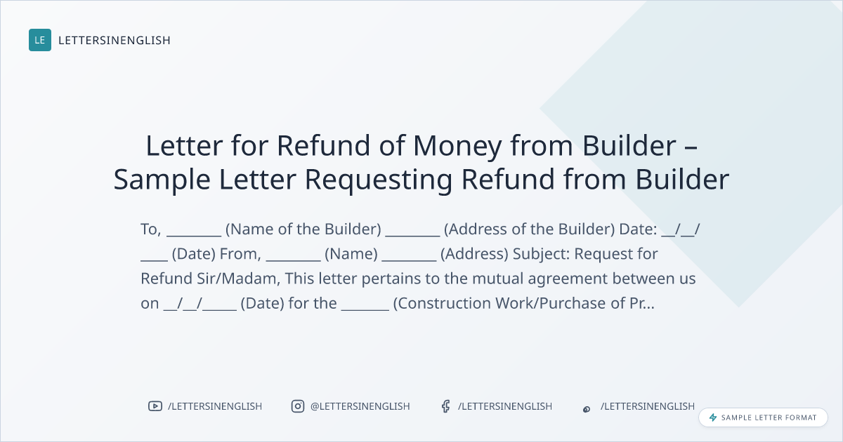 Letter for Refund of Money from Builder – Sample Letter Requesting Refund from Builder