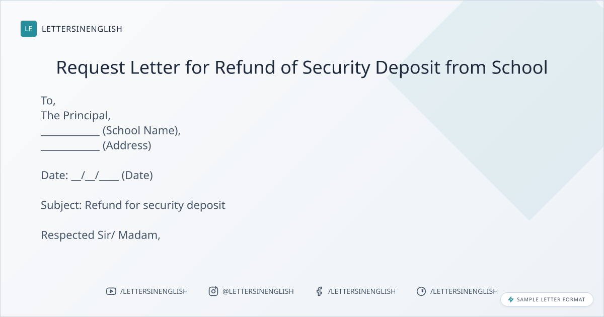 Sample Letter for Refund of Security Deposit from School