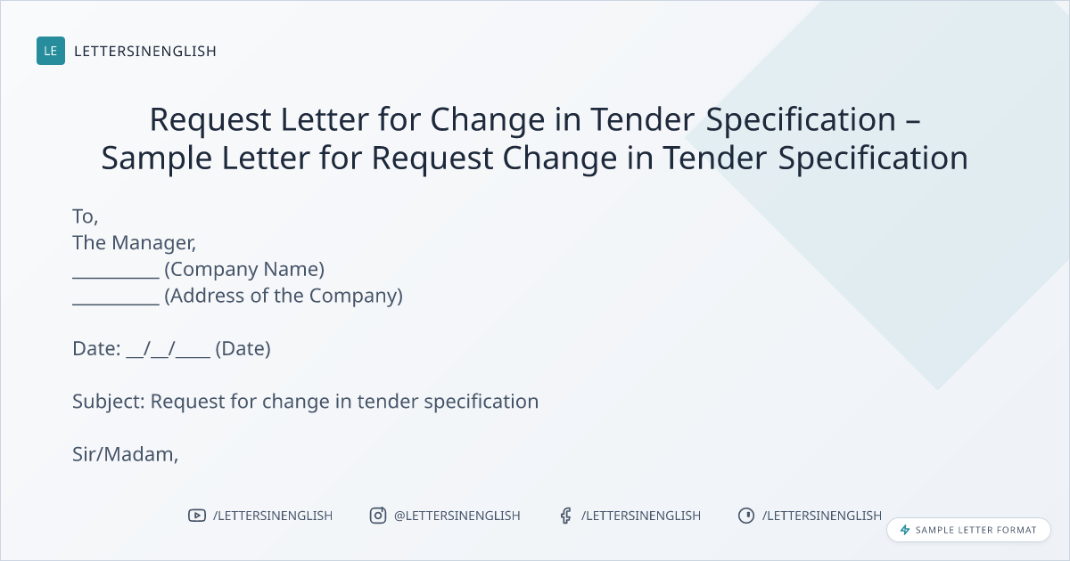 Request Letter for Change in Tender Specification – Sample Letter for Request Change in Tender Specification