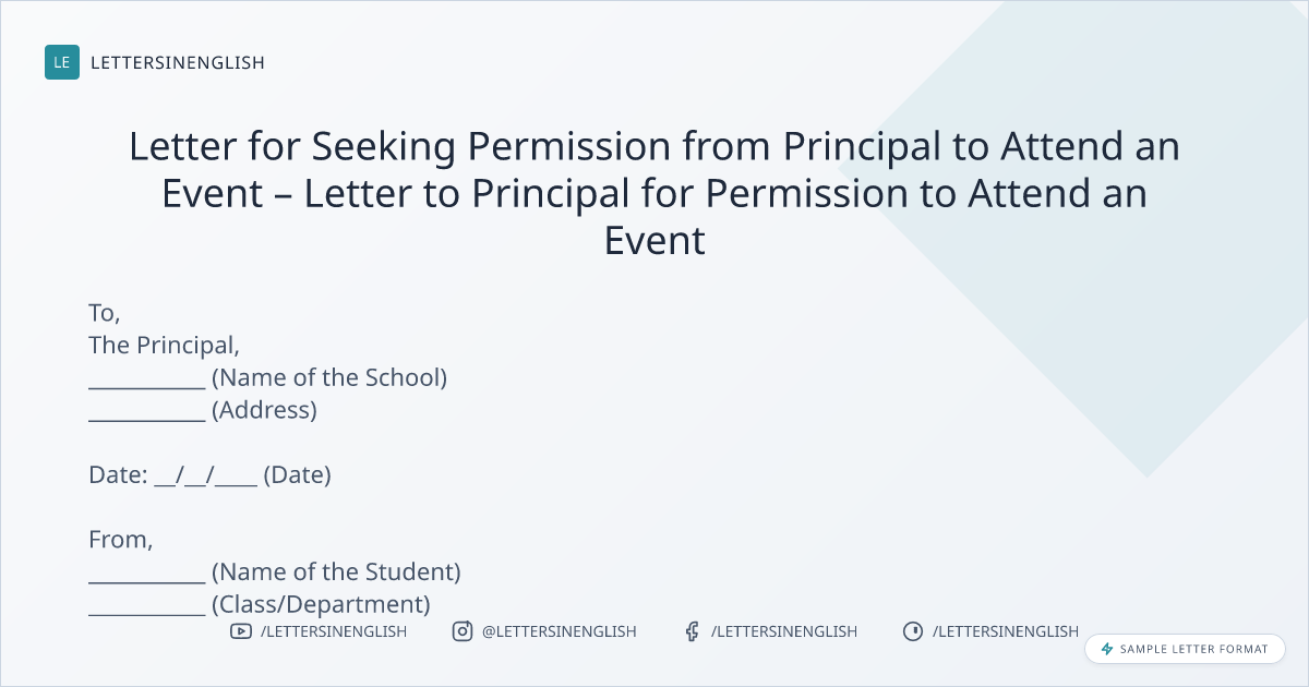 Request Letter for permission to attend an event - Request Letter to Principal for Permission to Attend Event