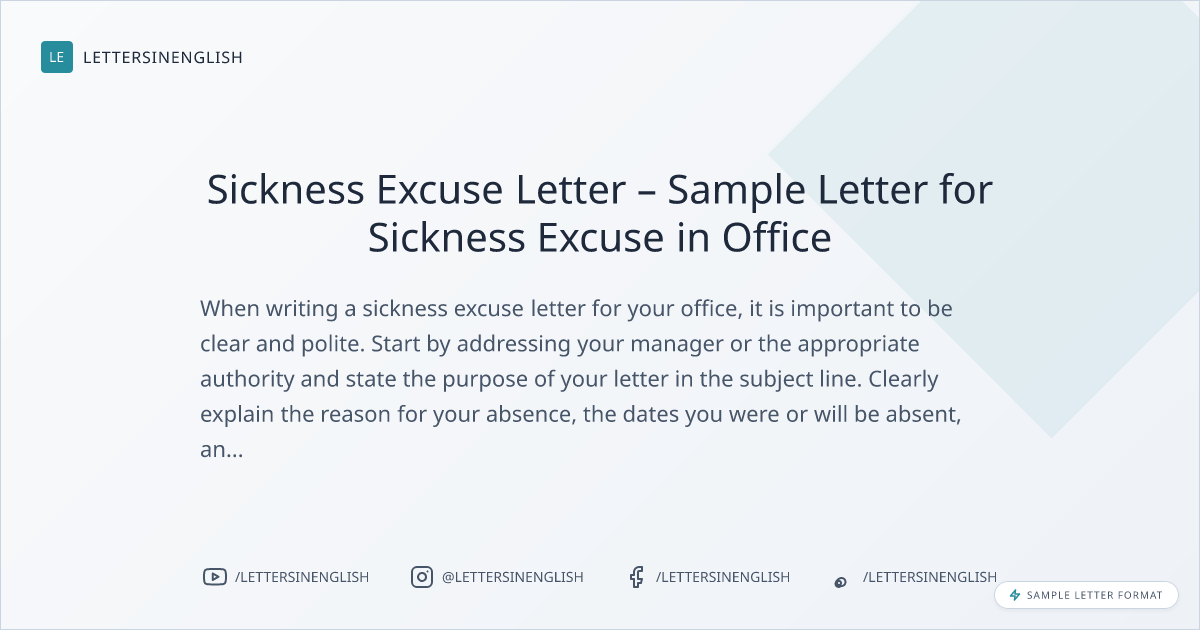 Sample Letter: Sickness Excuse Letter for Office