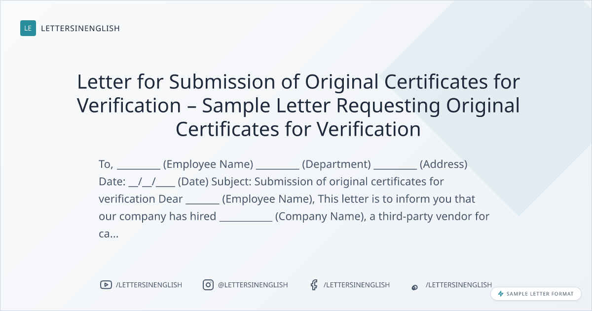 Letter for Submission of Original Certificates for Verification – Sample Letter Requesting Original Certificates for Verification