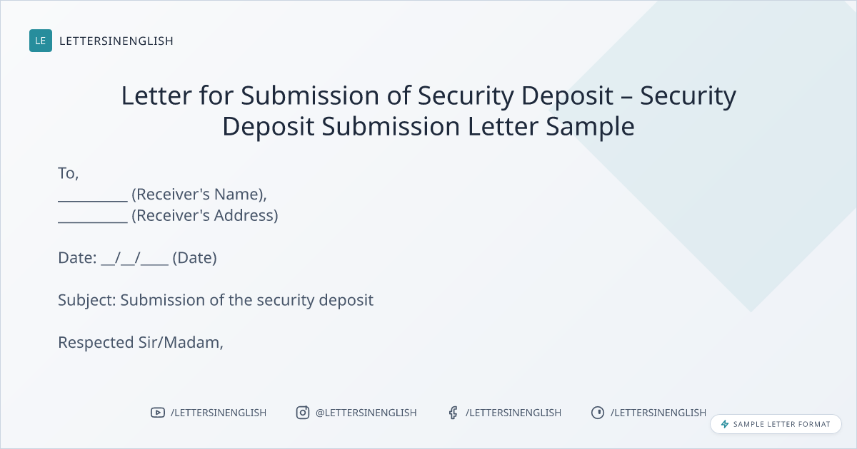 Sample Security Deposit Submission Letter Sample