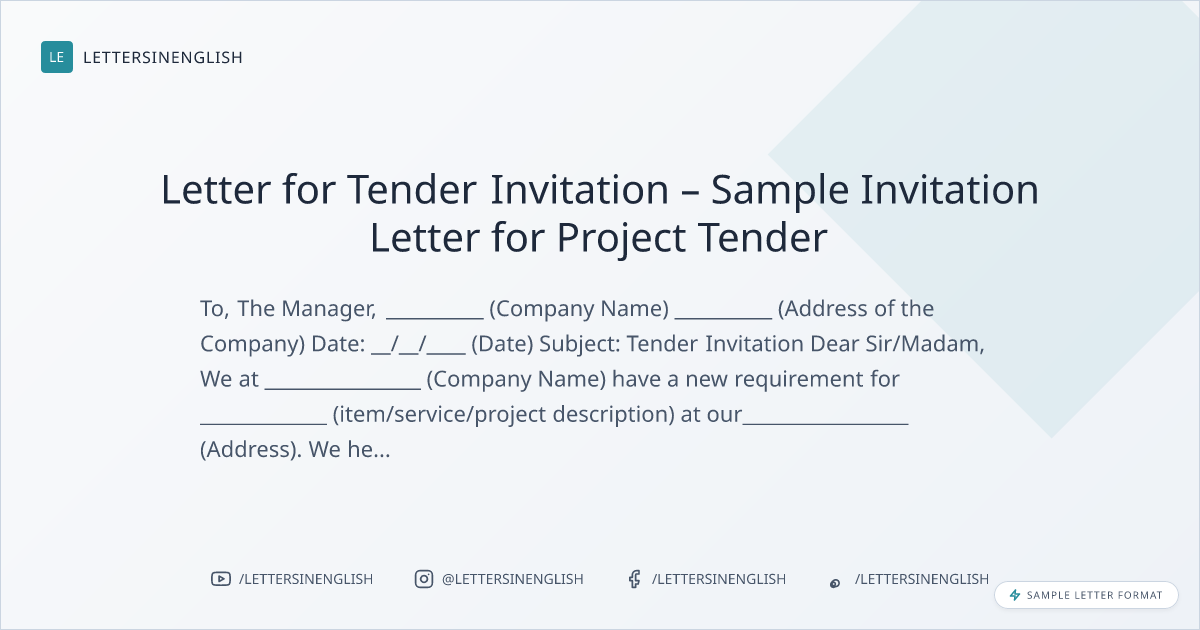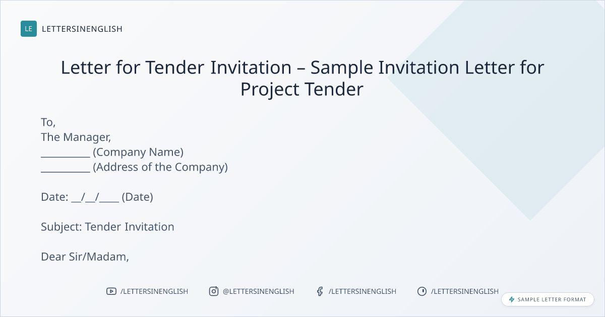 Letter for Tender Invitation – Sample Invitation Letter for Project Tender