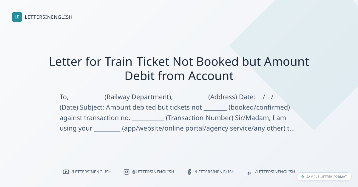 Letter Regarding Unsuccessful Train Ticket Booking with Debit from Account