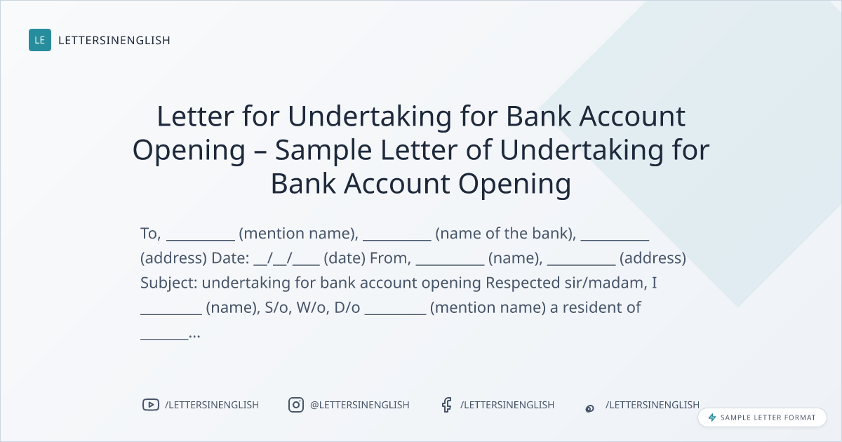 Letter for Undertaking for Bank Account Opening – Sample Letter of Undertaking for Bank Account Opening