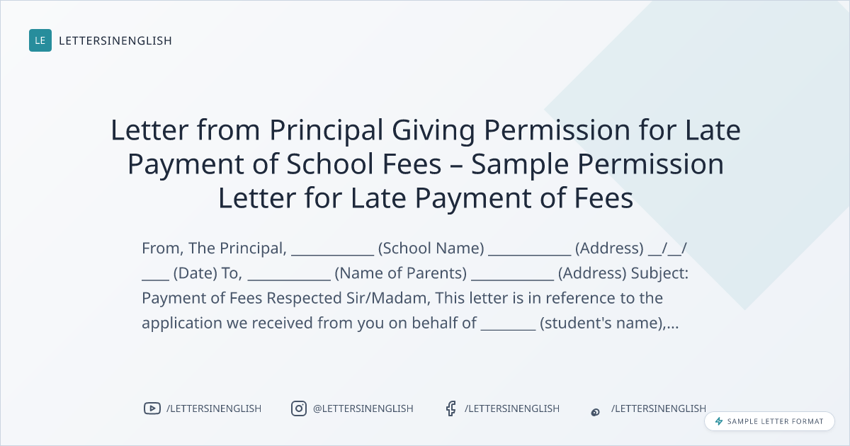 Letter from Principal Giving Permission for Late Payment of School Fees – Sample Permission Letter for Late Payment of Fees