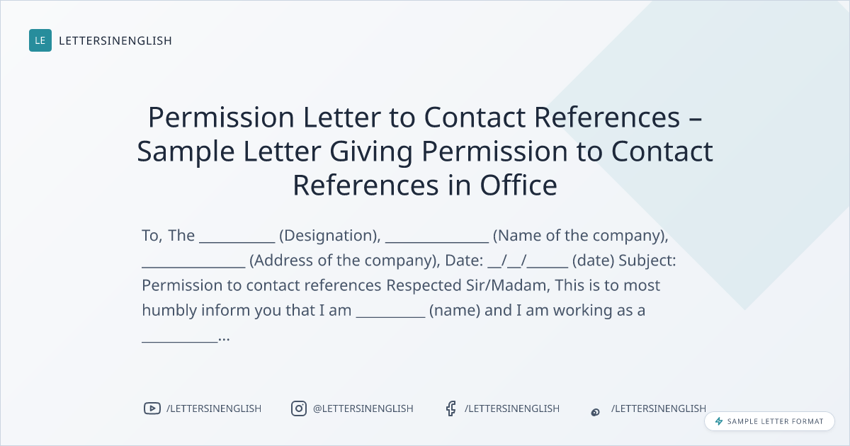 Permission Letter to Contact References – Sample Letter Giving Permission to Contact References in Office