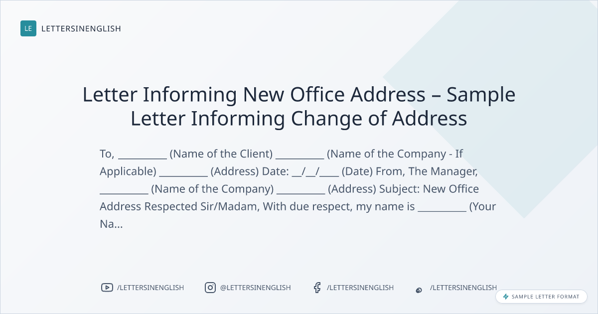 Letter Informing New Office Address – Sample Letter Informing Change of Address