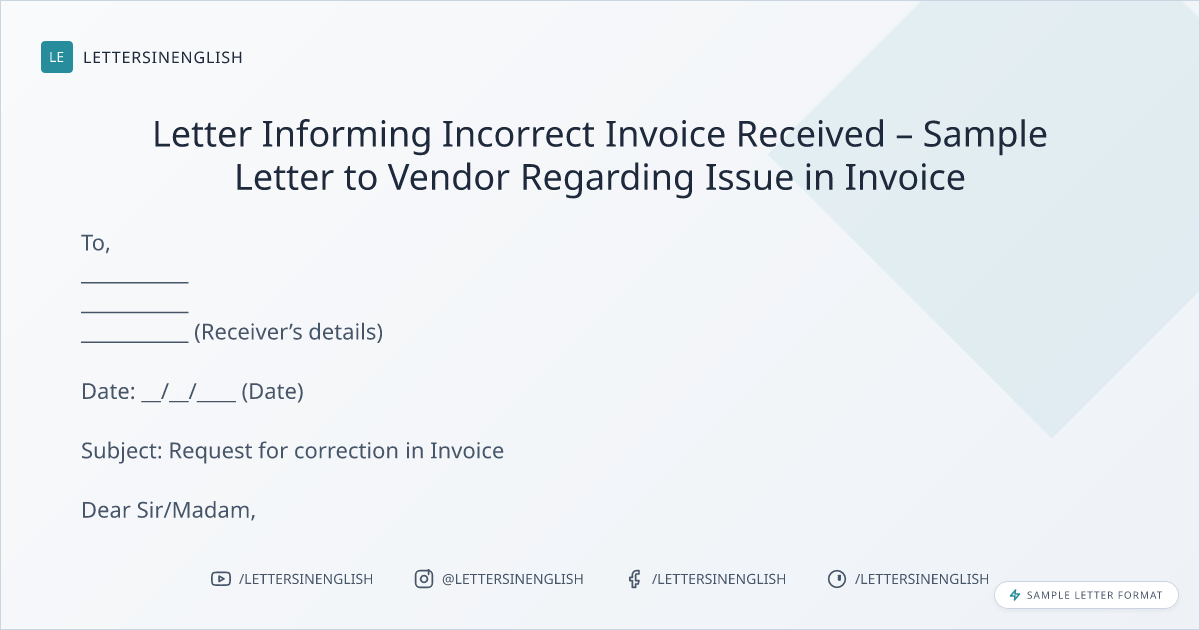 Letter Informing Incorrect Invoice Received – Sample Letter to Vendor Regarding Issue in Invoice