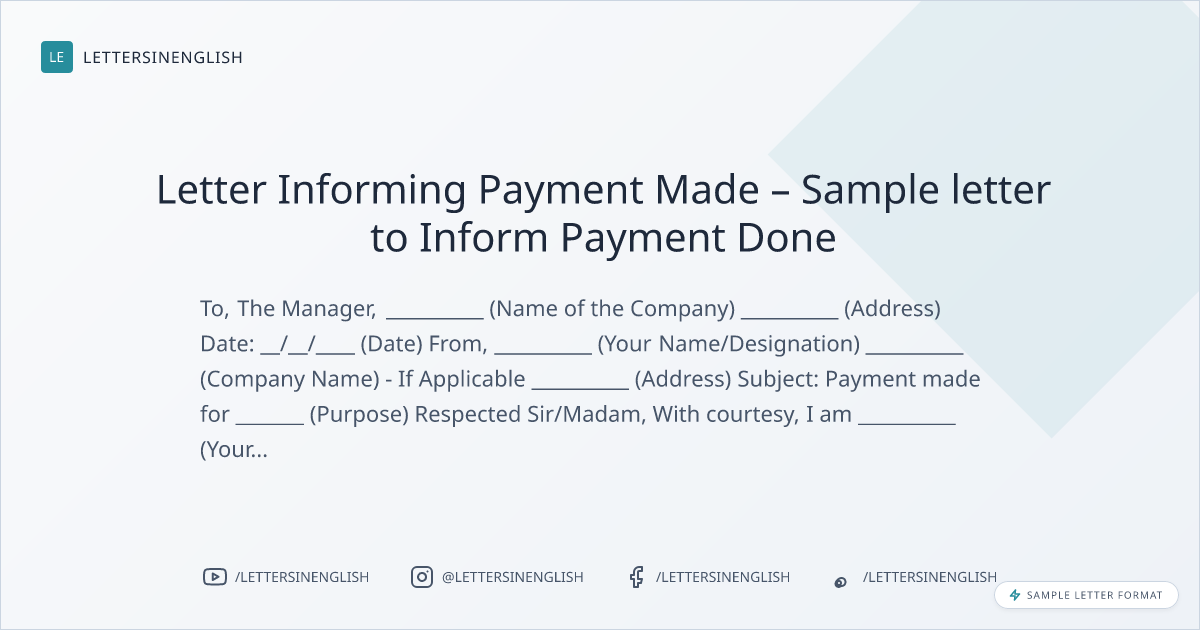 Letter Informing Payment Made – Sample letter to Inform Payment Done