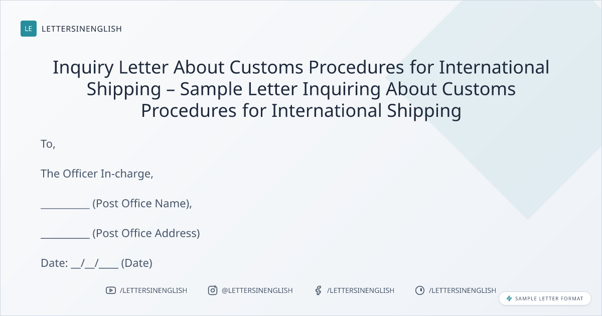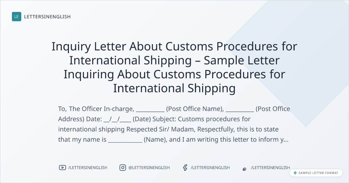 Inquiry Letter About Customs Procedures for International Shipping – Sample Letter Inquiring About Customs Procedures for International Shipping