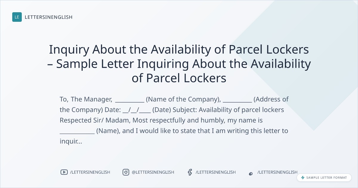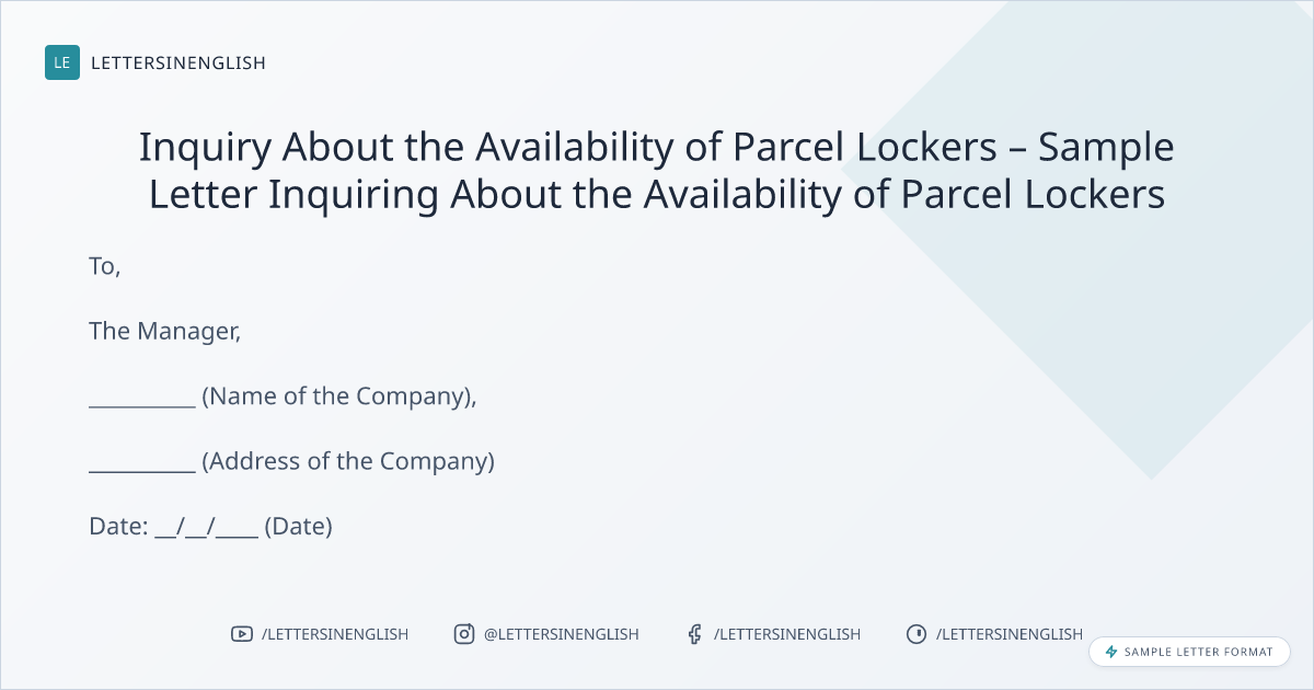 Inquiry About the Availability of Parcel Lockers – Sample Letter Inquiring About the Availability of Parcel Lockers