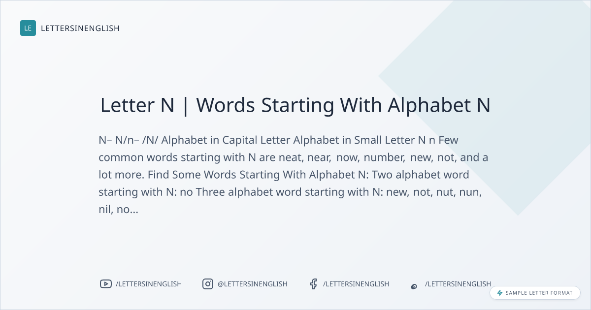Few common words starting with N are neat, near, now, number, new, not, and a lot more.