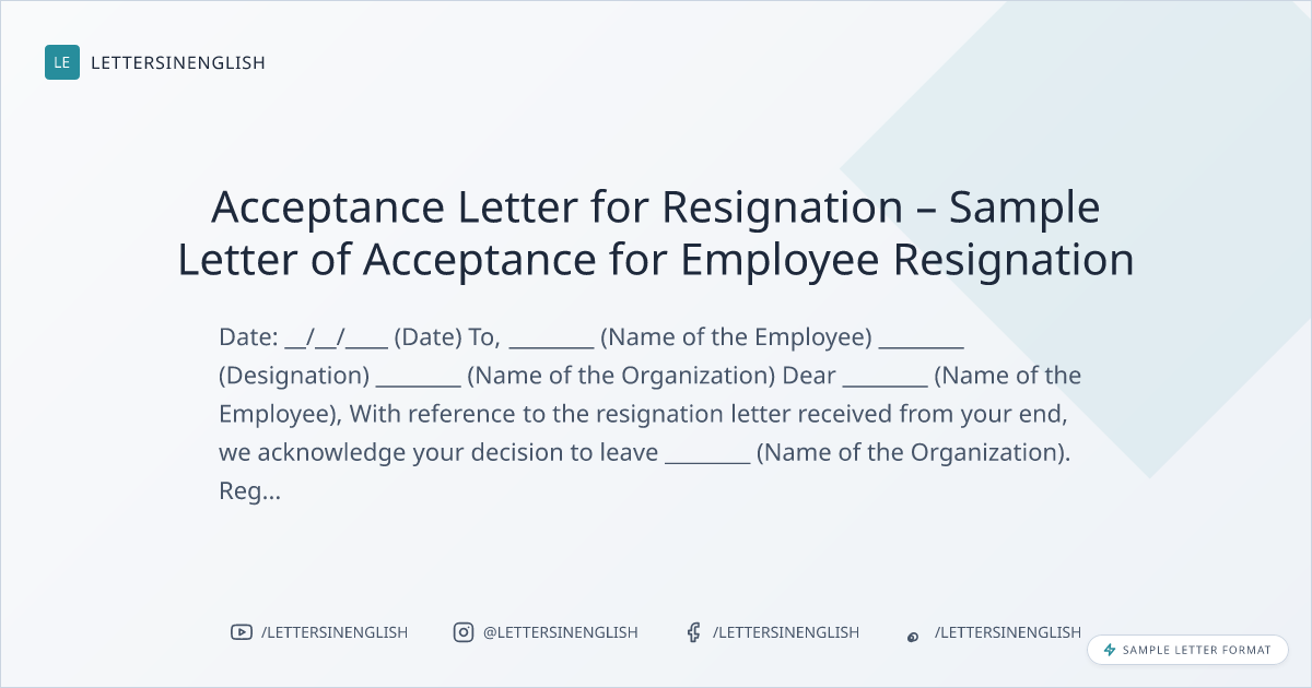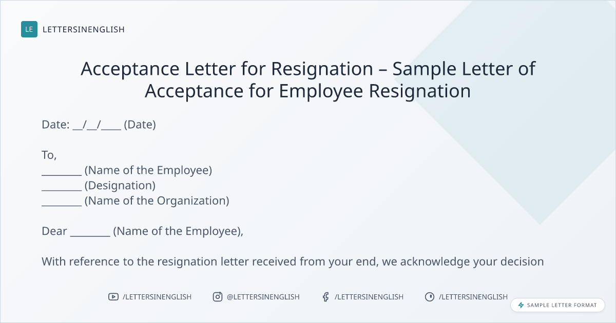 Acceptance Letter for Resignation – Sample Letter of Acceptance for Employee Resignation