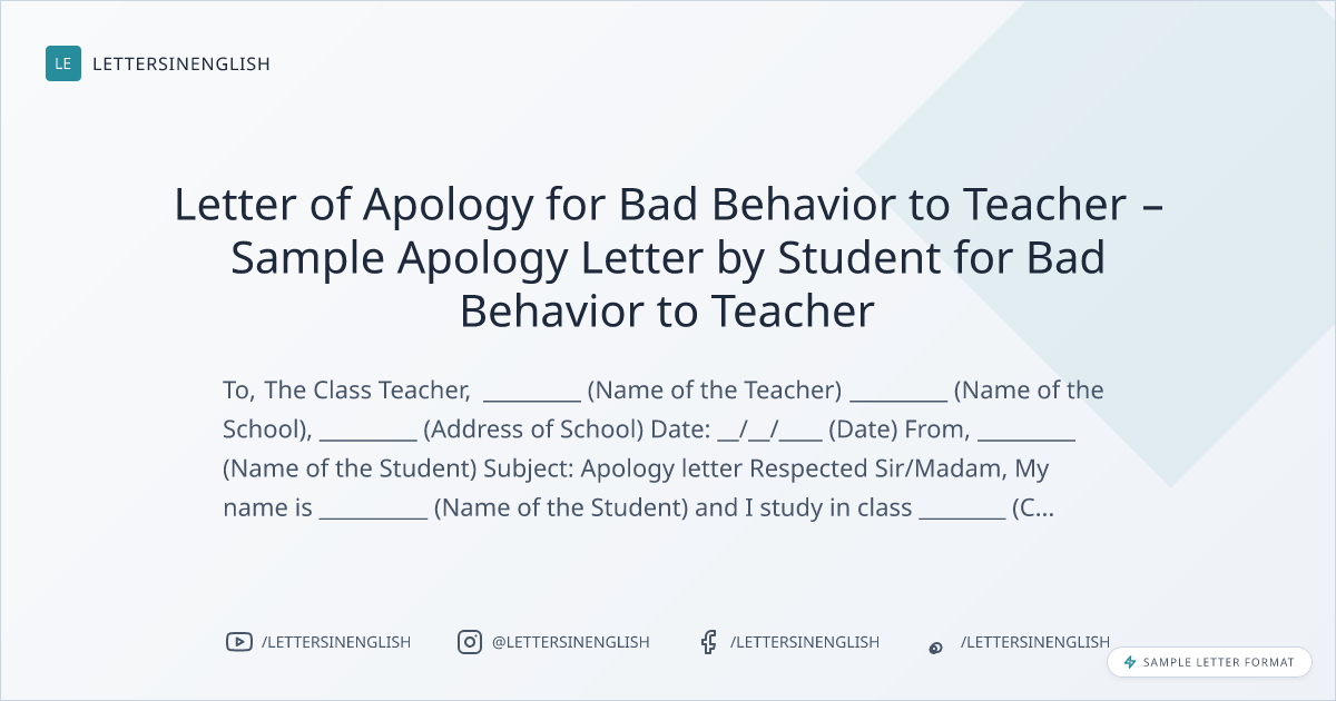 Letter of Apology for Bad Behavior to Teacher – Sample Apology Letter by Student for Bad Behavior to Teacher