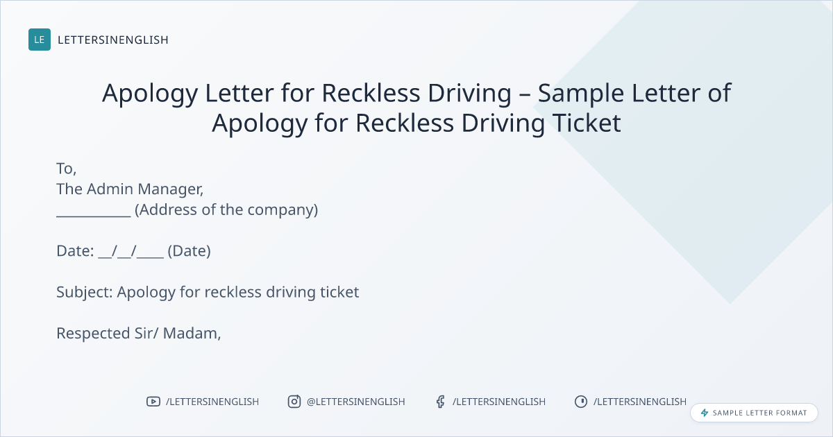 Apology Letter for Reckless Driving – Sample Letter of Apology for Reckless Driving Ticket