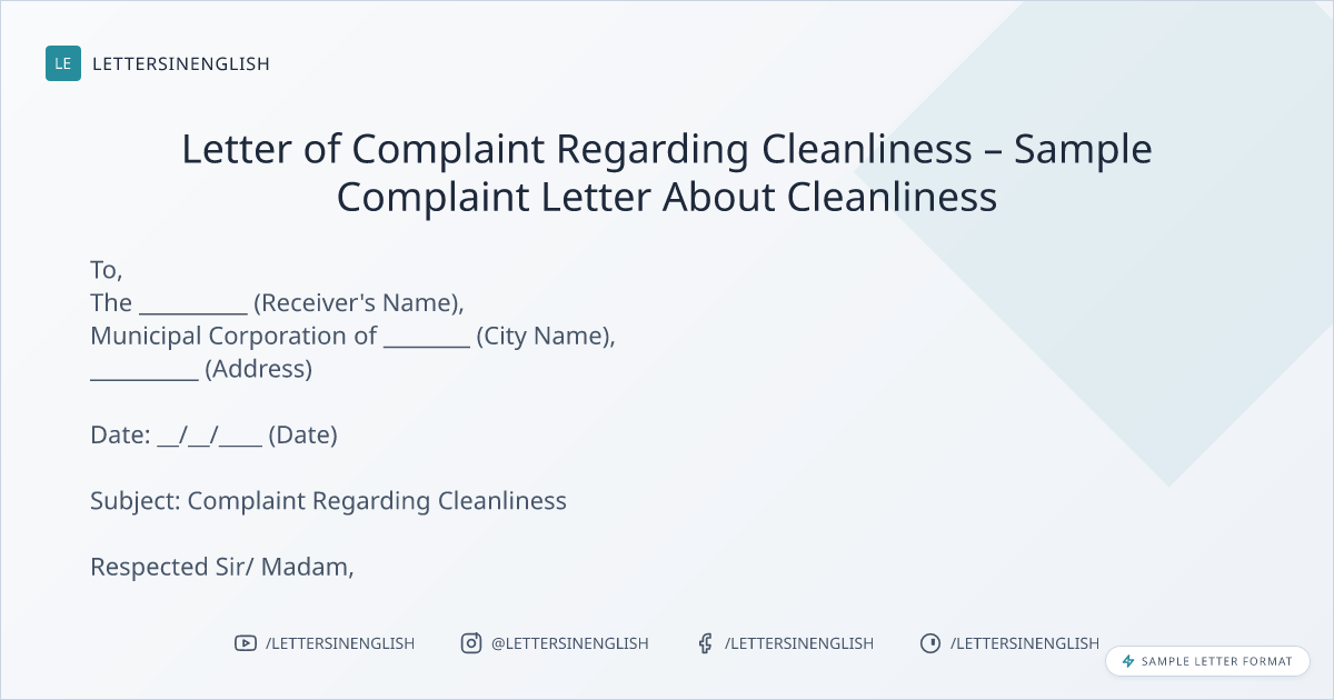 Letter of Complaint Regarding Cleanliness – Sample Complaint Letter About Cleanliness