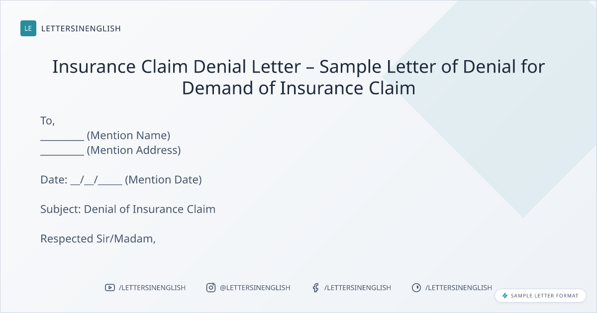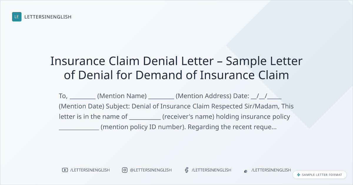 Insurance Claim Denial Letter – Sample Letter of Denial for Demand of Insurance Claim
