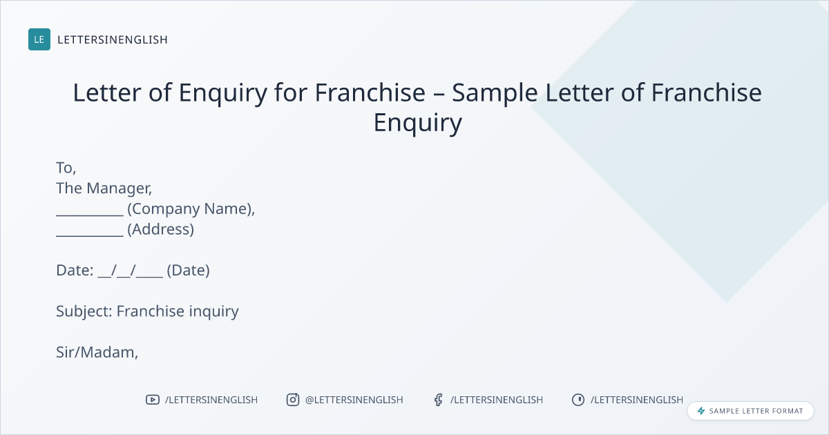 Letter of Enquiry for Franchise – Sample Letter of Franchise Enquiry