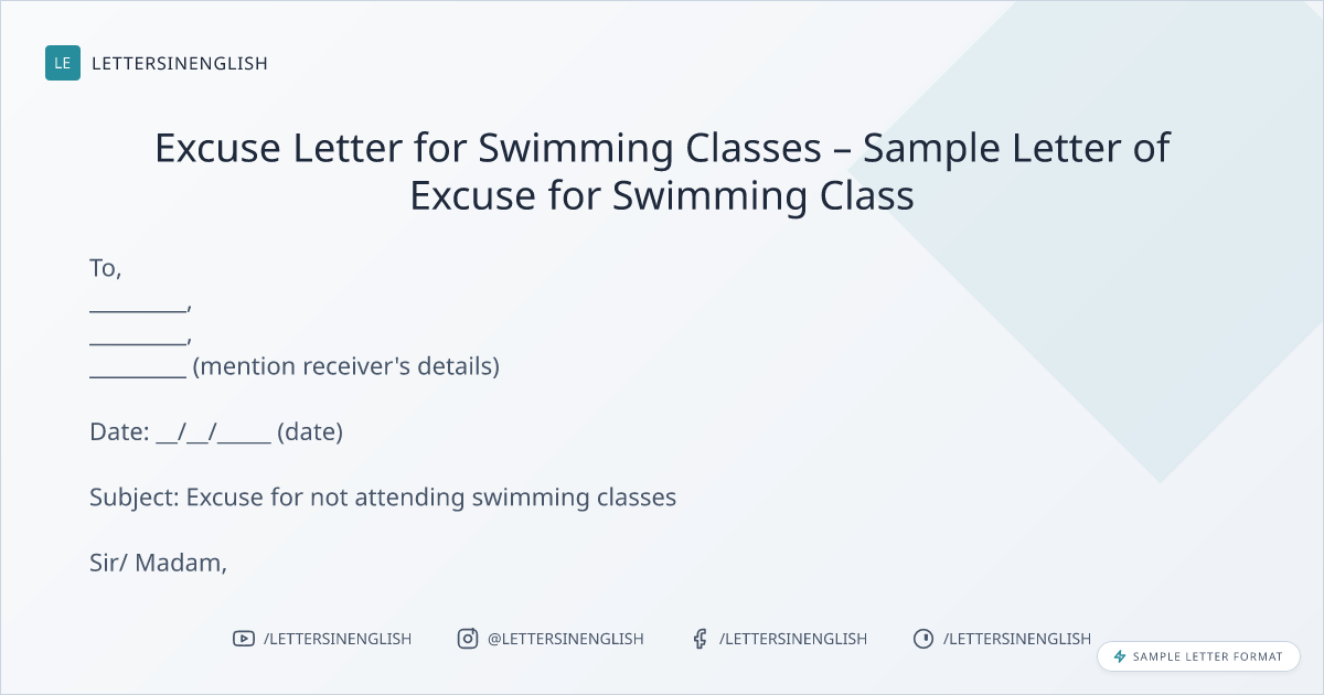 Excuse Letter for Swimming Classes – Sample Letter of Excuse for Swimming Class