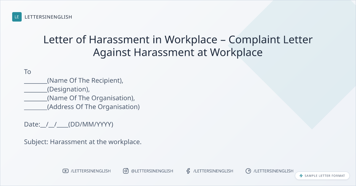 Letter of Harassment in Workplace – Complaint Letter Against Harassment at Workplace