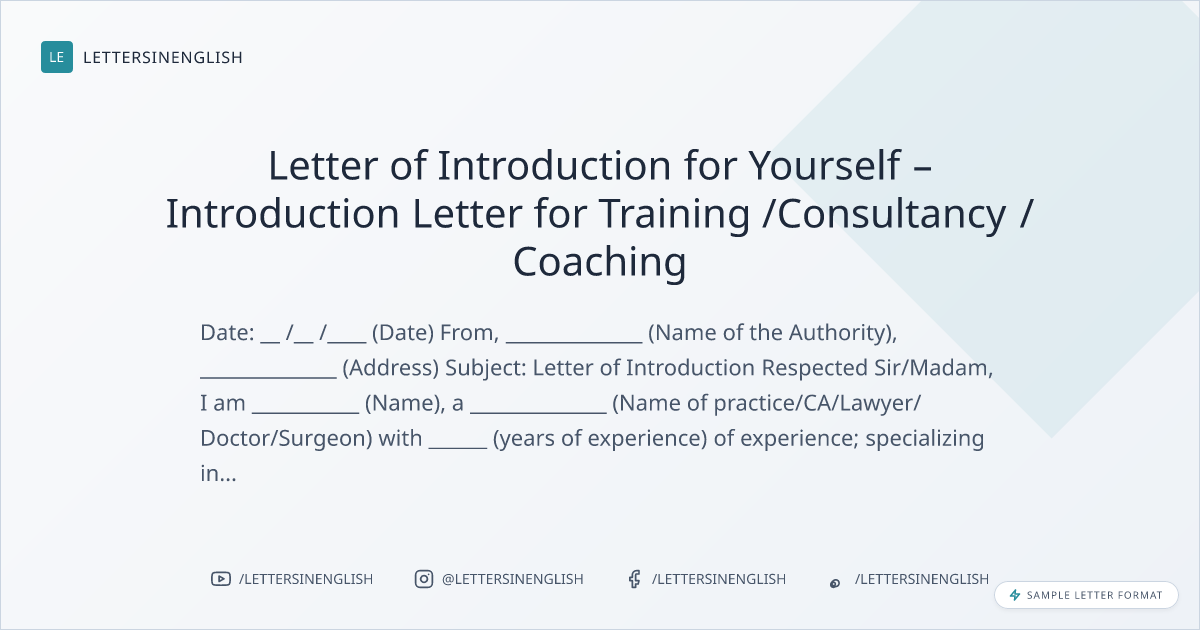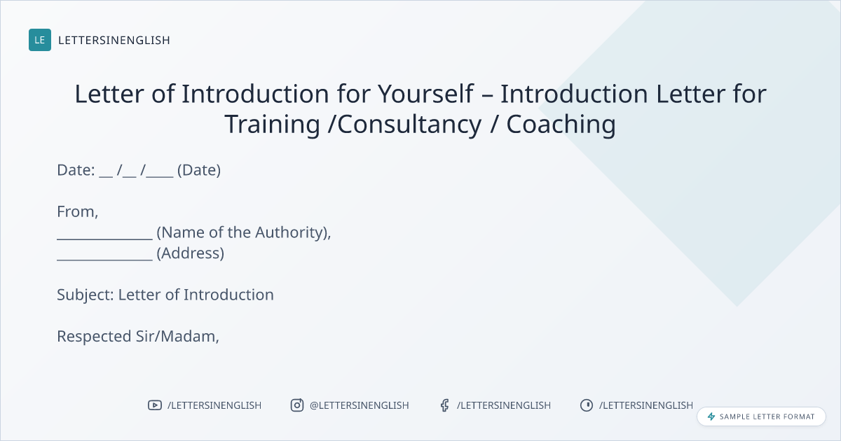 Letter of Introduction for Yourself – Introduction Letter for Training /Consultancy / Coaching