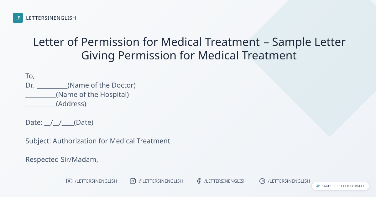 Letter of Permission for Medical Treatment – Sample Letter Giving Permission for Medical Treatment