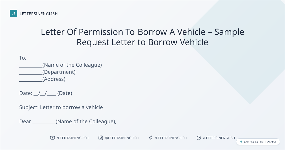 Letter Of Permission To Borrow A Vehicle – Sample Request Letter to Borrow Vehicle