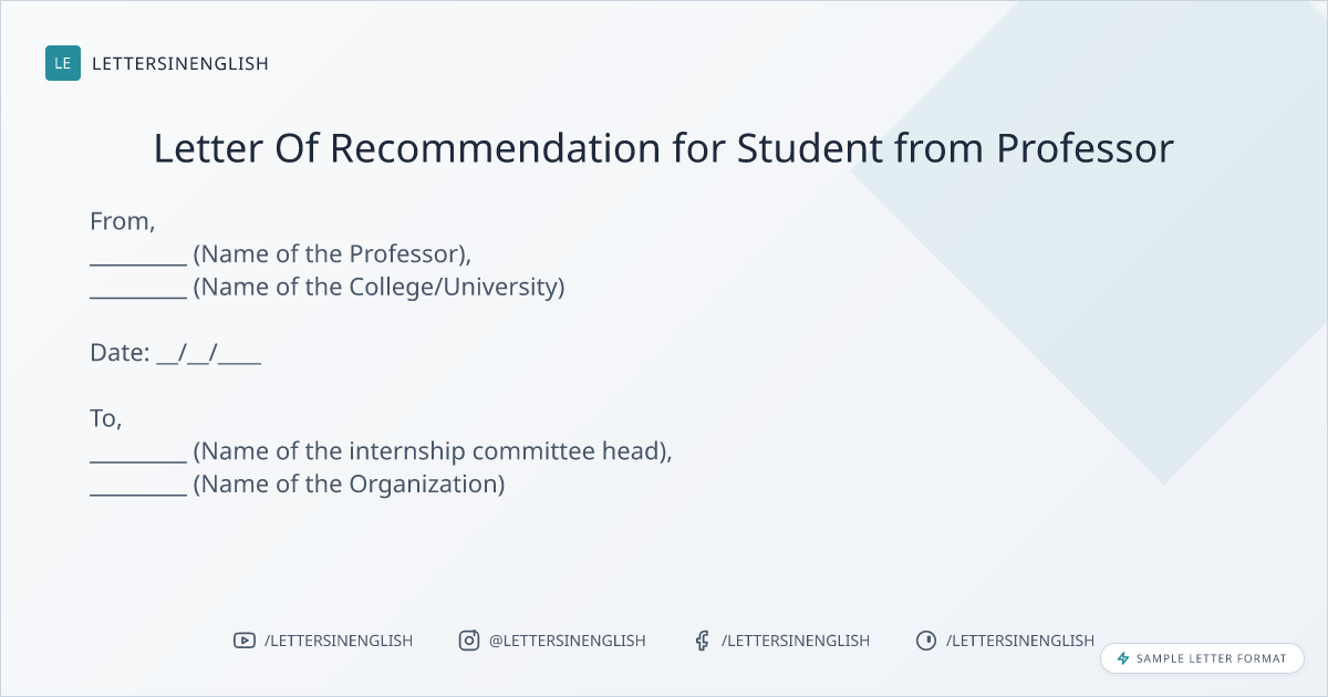 Letter Of Recommendation for Student from Professor