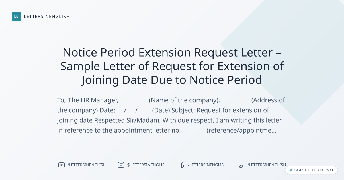 Notice Period Extension Request Letter – Sample Letter of Request for Extension of Joining Date Due to Notice Period
