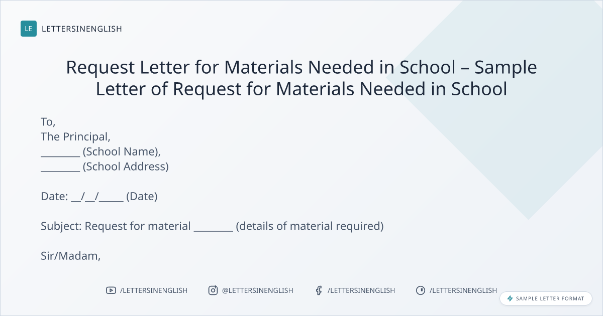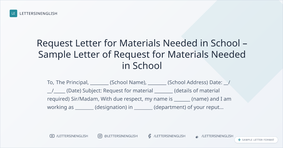 Request Letter for Materials Needed in School – Sample Letter of Request for Materials Needed in School