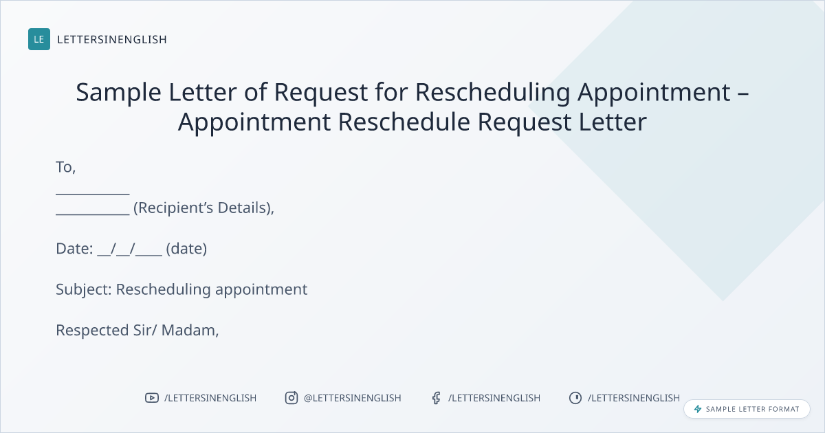 Sample Letter of Request for Rescheduling Appointment – Appointment Reschedule Request Letter