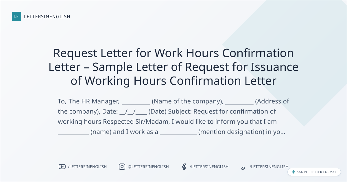 Request Letter for Work Hours Confirmation Letter – Sample Letter of Request for Issuance of Working Hours Confirmation Letter