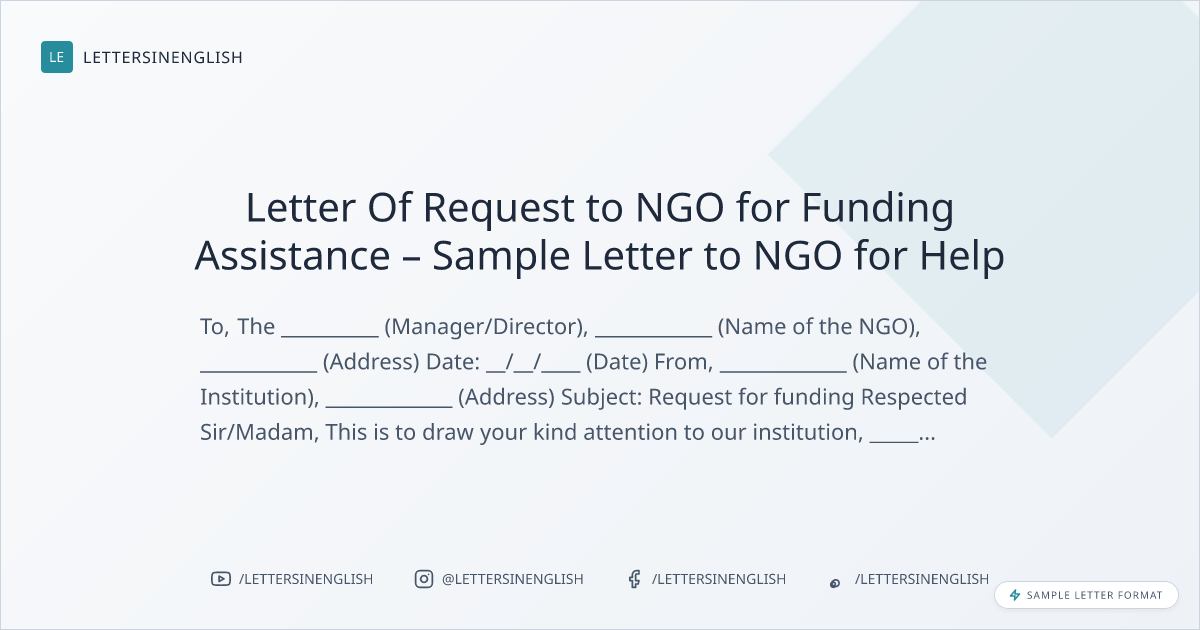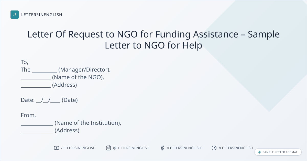 Letter Of Request to NGO for Funding Assistance – Sample Letter to NGO for Help