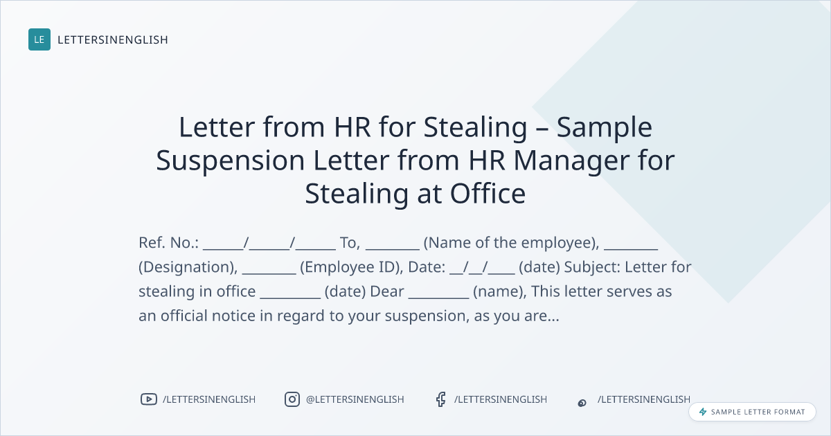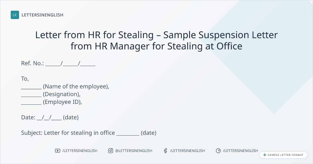 Letter from HR for Stealing – Sample Suspension Letter from HR Manager for Stealing at Office