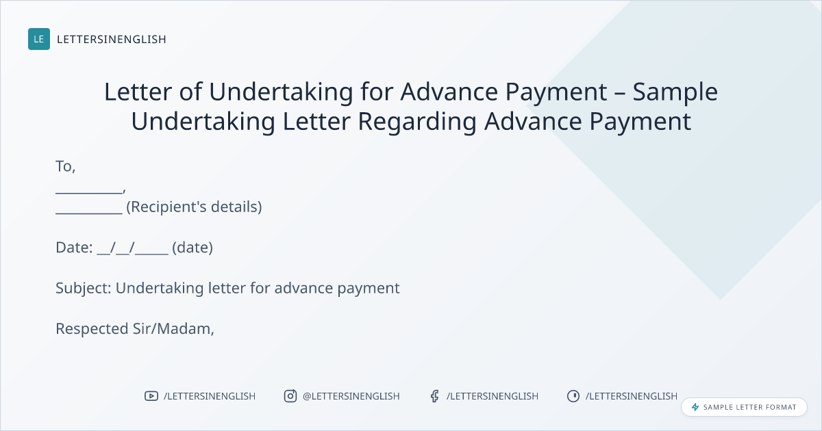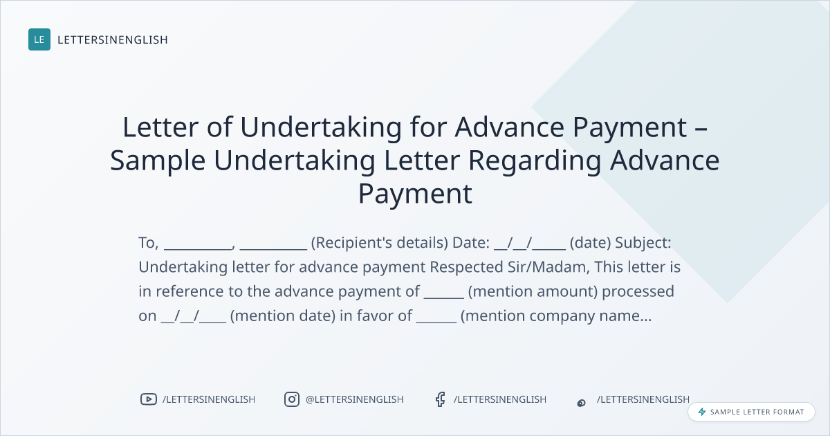 Letter of Undertaking for Advance Payment – Sample Undertaking Letter Regarding Advance Payment