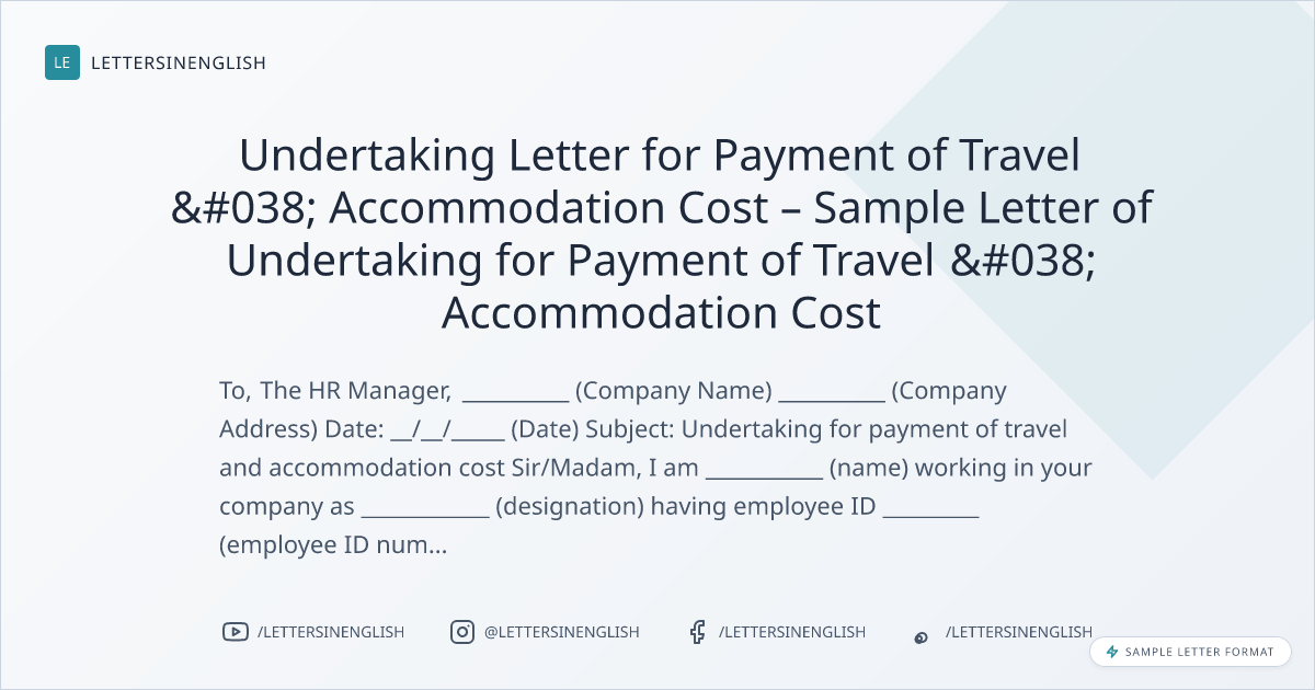 Undertaking Letter for Payment of Travel & Accommodation Cost – Sample Letter of Undertaking for Payment of Travel & Accommodation Cost