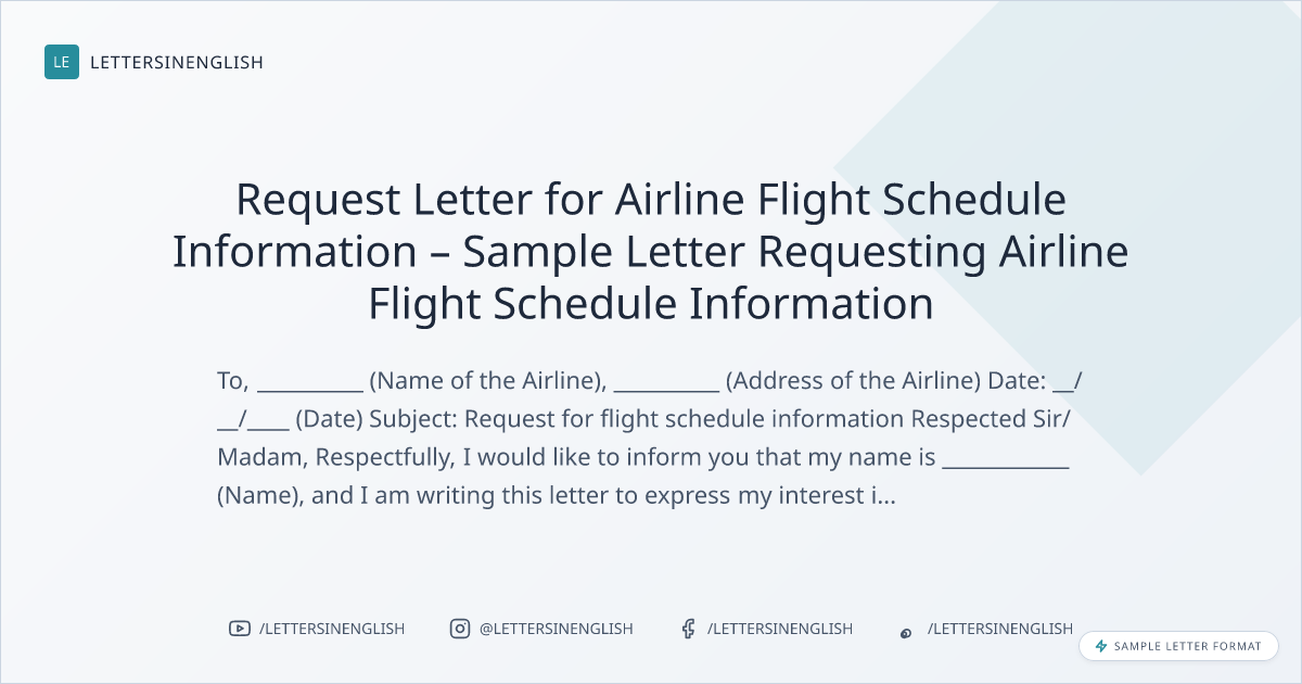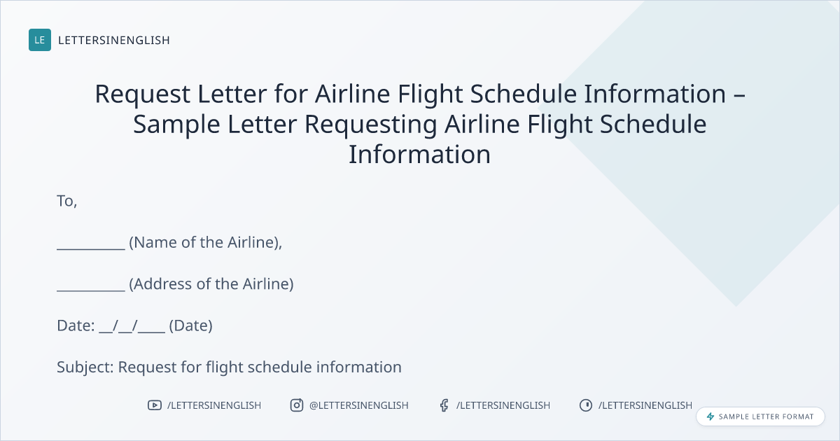 Request Letter for Airline Flight Schedule Information – Sample Letter Requesting Airline Flight Schedule Information