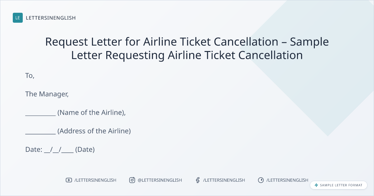 Request Letter for Airline Ticket Cancellation – Sample Letter Requesting Airline Ticket Cancellation