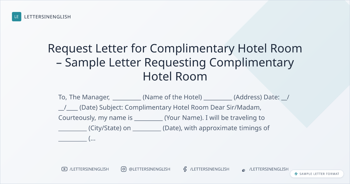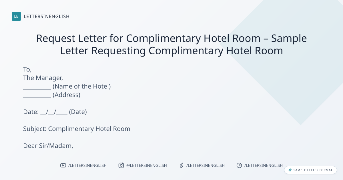 Request Letter for Complimentary Hotel Room – Sample Letter Requesting Complimentary Hotel Room