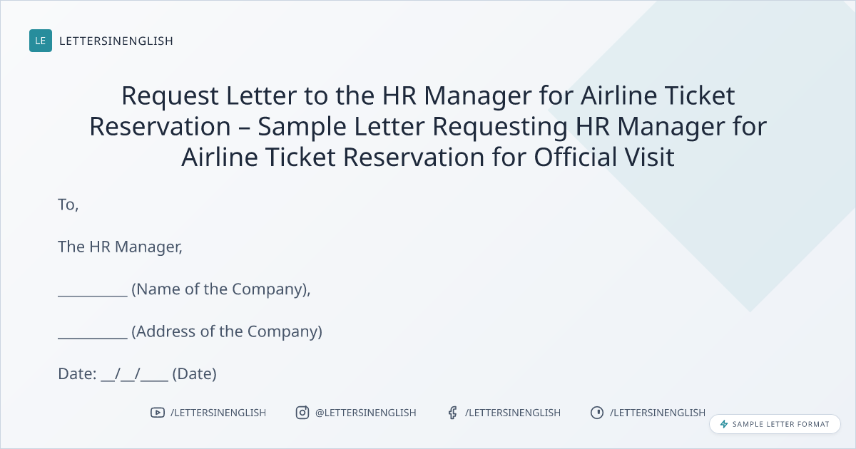 Request Letter to the HR Manager for Airline Ticket Reservation – Sample Letter Requesting HR Manager for Airline Ticket Reservation for Official Visit
