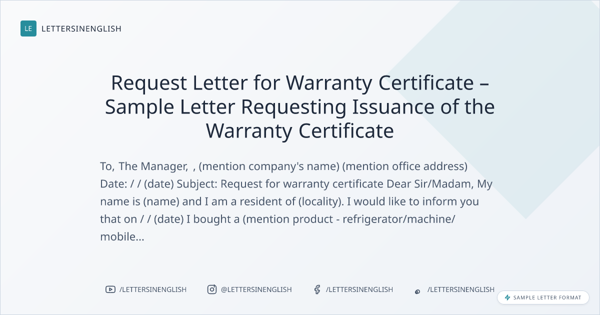 Request Letter for Warranty Certificate – Sample Letter Requesting Issuance of the Warranty Certificate