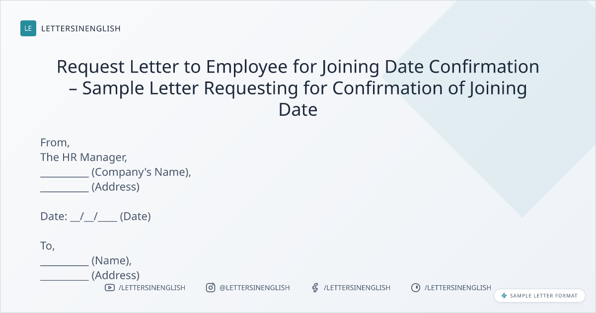 Request Letter to Employee for Joining Date Confirmation – Sample Letter Requesting for Confirmation of Joining Date