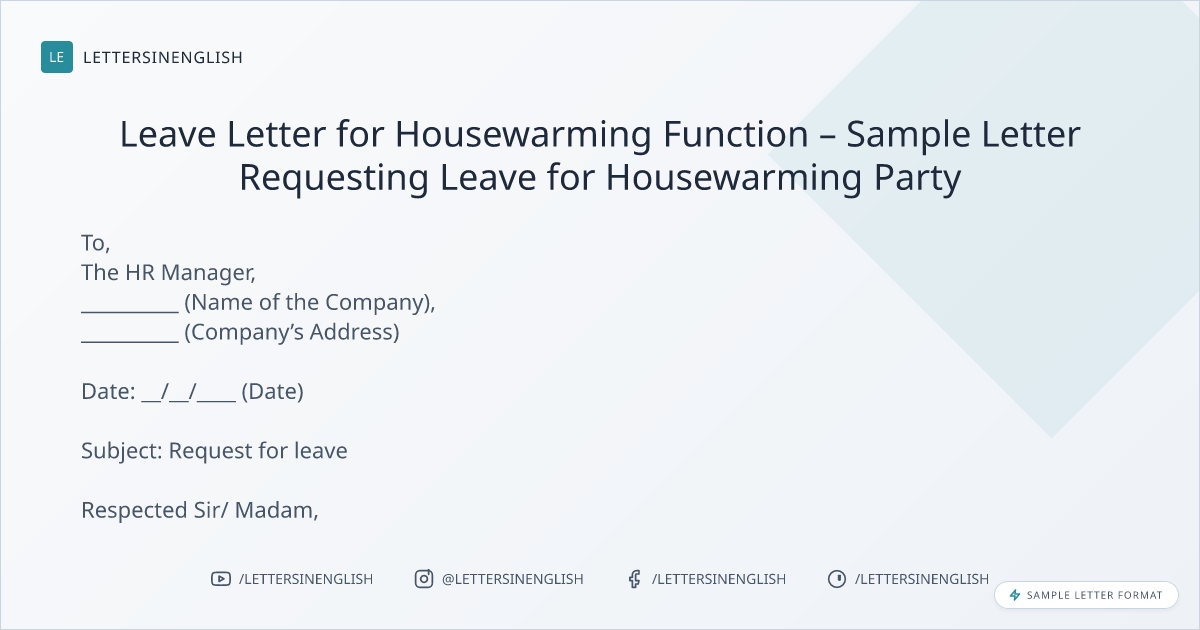 Leave Letter for Housewarming Function – Sample Letter Requesting Leave for Housewarming Party