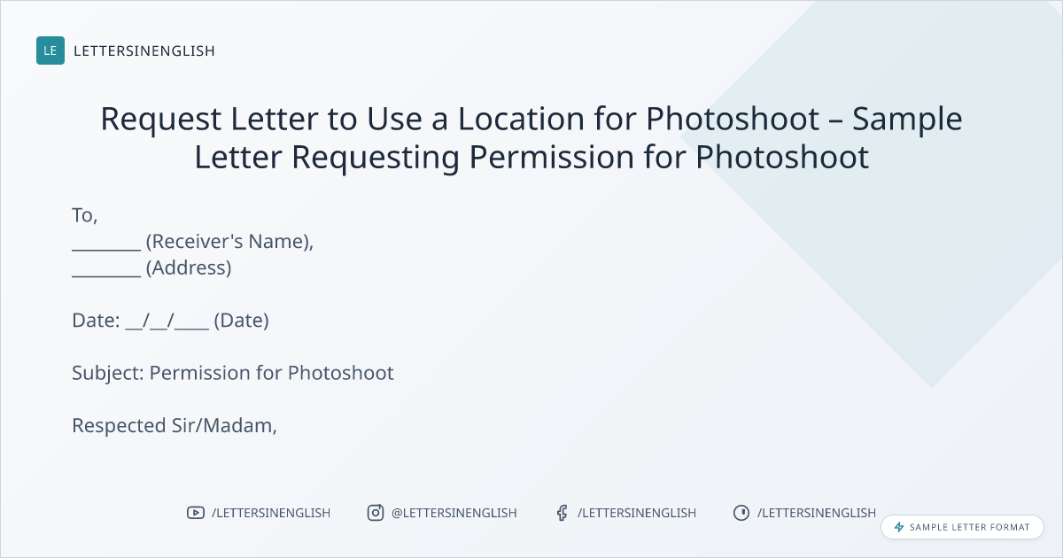Request Letter to Use a Location for Photoshoot – Sample Letter Requesting Permission for Photoshoot