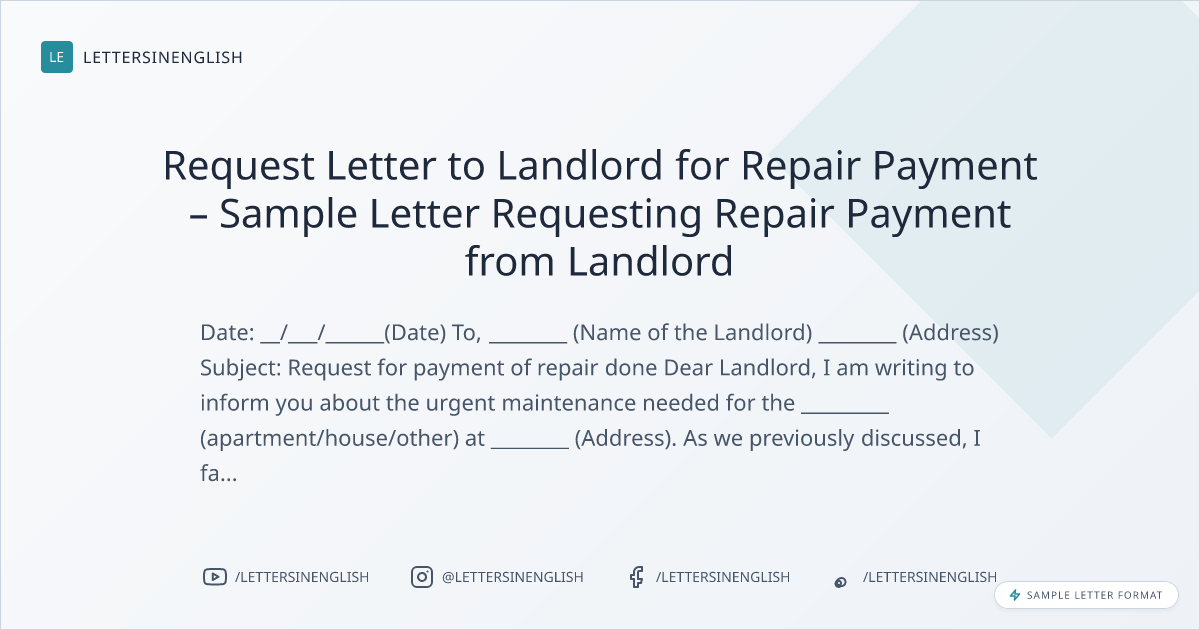 Request Letter to Landlord for Repair Payment – Sample Letter Requesting Repair Payment from Landlord